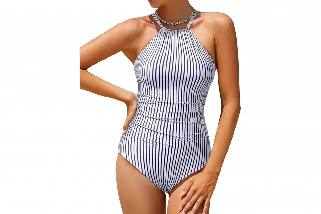 If you’re on the hunt for something with a bit more coverage, try this high-neck one-piece that hundreds of shoppers have raved about. Its halter neckline reaches the top of your chest while its adjustable straps stretch into a crisscross pattern along your back. The bathing suit also has built-in cups for support and security.