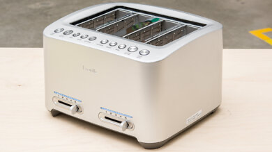 It toasts very evenly, and with a superb toasting range, you can easily make golden-brown sandwich bread or toast denser slices in a single cycle. However, even though it’s one of the best-performing 4-slot toasters we’ve tested, it doesn’t brown bread as evenly as most 2-slot toasters, and as a result, some slots produce toast that’s darker than others on the same setting. It doesn’t compensate very well for the toaster heating up after the first batch, either, so if you’re making a lot of toast, you’ll want to use a lower setting for the second round to get consistent results. On the plus side, its slots can be lifted high enough to easily grab smaller items, and each pair of slots can be operated independently, which is handy when two people want to use the toaster at the same time.