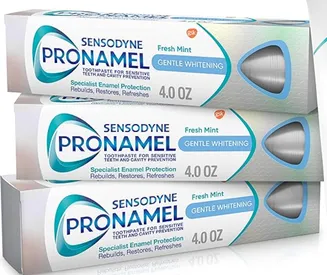 Sensodyne Pronamel Gentle Whitening toothpaste was recommended by Khan, given its low level of abrasiveness compared to other products.